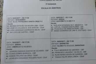 Os árbitros que irão comandar os jogos da 7ª rodada da Copa Cidade do Natal, foram divulgados por meio de audiência pública nesta quinta-feira na sede da Federação Norte-rio-grandense de Futebol (FNF).