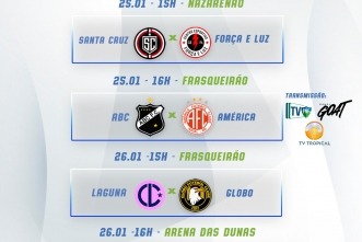 Completam a rodada Santa Cruz x Força e Luz no sábado às 15h no Nazarenão e Laguna x Globo no domingo às 15h no Frasqueirão.