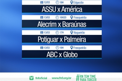 Palmeira e América abrem a rodada no Nazarenão, às 18h45. O Potiguar encara o ASSU, no Nogueirão, às 20h. No mesmo horário, o Globo recebe o Baraúnas, no Barrettão. Encerrando, ABC e Alecrim realizam o clássico da rodada, às 21h, no Frasqueirão.