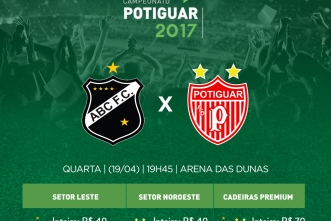 O jogo entre ABC e Potiguar será realizado no próximo dia 19 de abril, na Arena das Dunas, às 19h45.
