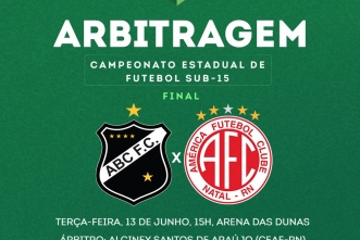 O presidente da Comissão Estadual de Arbitragem de Futebol (CEAF), coronel Ricardo Albuquerque, anunciou nesta quinta-feira, os árbitros que irão comandar a final do Campeonato Estadual de Futebol Sub-15. A partida acontece dia 13 de junho, às 15h, na Arena das Dunas.