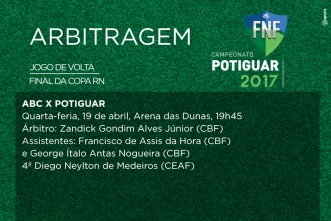 Segunda, 17 de Abril de 2017 às 16h18 Definida a arbitragem para jogo de volta da final da Copa RN