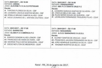 Foi divulgada na tarde desta quinta-feira (26) a arbitragem para a 4ª rodada da Copa Cidade do Natal. A divulgação foi feita em uma audiência pública realizada na sede da Federação Norte-rio-grandense de Futebol, pelo Coronel Ricardo Albuquerque, presidente da Comissão Estadual de Arbitragem de Futebol.