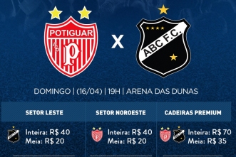 O jogo entre Potiguar e ABC será realizado no próximo dia 16 de abril, na Arena das Dunas, às 19h.