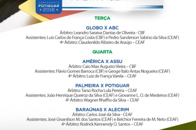 A escala de árbitros para a segunda rodada do Campeonato Potiguar 2016 já foi definida. Os jogos acontecem a partir desta terça-feira (26), com Globo x ABC no Barretão, a partir das 19h. O árbitro Ítalo Medeiros, antes escalado para apitar esta partida, teve que ser substituído devido à problemas de saúde. Em novo sorteio realizado, o substituto será o árbitro Zandick Gondim Alves Júnior, assistentes e quarto árbitro foram mantidos.