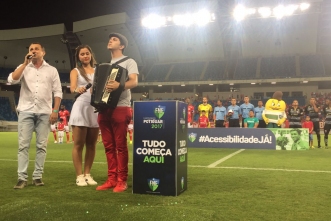 A Federação Norte-rio-grandense de Futebol (FNF) retomou o projeto Futebol em Tom Maior na noite deste sábado (14), antes da partida entre Santa Cruz e América. O encontro marcou a estreia do Campeonato Estadual 2017 e trouxe na ocasião o hino nacional tocado pelo Sanfoneiro Lipe Guedes com performance vocal de César Sóanata.
