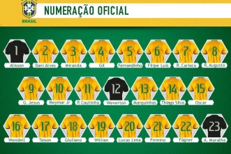 A Seleção Brasileira já tem sua numeração oficial para a próxima partida das Eliminatórias Copa do Mundo Rússia 2018, contra a Bolívia, em Natal, na Arena das Dunas.