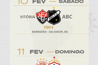 No sábado (10), o ABC vai até Salvador encarar o Vitória no Barradão. O jogo às 19h terá transmissão da ESPN e Nosso Futebol. Árbitro Nairon Pereira de Lira - PE; Árbitro Assistente 1 Fernando Antônio da Silva Junior - PE; Árbitro Assistente 2 Jose Romão da Silva Neto - PE; Quarto Árbitro Josué Reis de Jesus Junior - BA.