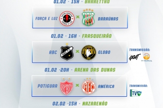 Às 16h, o ABC recebe o Globo no Frasqueirão, com transmissão ao vivo da TV Tropical e Canal GOAT. Em caso de vitória, o líder ABC garante vaga na semifinal. O Globo, na 6ª colocação, quer se afastar da zona de rebaixamento e confirmar vaga na próxima fase.