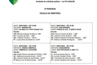 A Comissão de Arbitragem de Futebol do RN divulgou a escala de árbitros para as partidas da 5ª rodada do Campeonato Potiguar 2023.