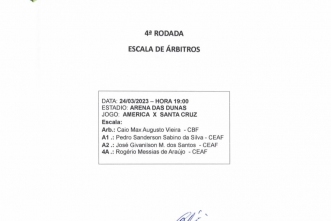 A Comissão de Arbitragem de Futebol do RN divulgou a escala de árbitros para jogo da 4ª rodada da Segunda Fase do Campeonato Potiguar 2023.