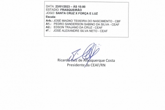 A quarta rodada do Campeonato Nota Potiguar 2023 se inicia na próxima segunda-feira (23), com a partida entre Santa Cruz e Força e Luz. A escala de arbitragem para a partida foi divulgada, a seguir: