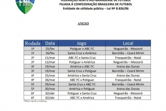 A Federação Norte-Rio-Grandense de Futebol publica a resolução com a tabela com as datas e confrontos da segunda fase do Campeonato Nota Potiguar 2023.