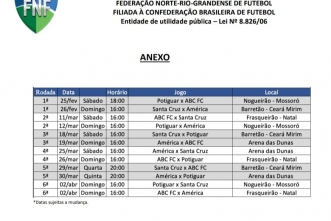 A 2ª rodada será realizada nos dias 11 e 12 de março. A última rodada da fase quadrangular está marcada para o dia 12 de abril às 16h. O calendário observa os princípios regulamentares e leva em consideração as datas das competições regionais e nacionais que os clubes potiguares participarão, além da grade de programação da detentora dos direitos de transmissão.