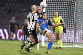 O Brasil começou melhor e quase abriu o placar aos sete minutos, após boa jogada de Jhonson. Aos 20, a atacante teve nova boa chance, mas também não conseguiu aproveitar. Na marca dos 22 minutos, as adversárias chegaram ao primeiro gol. Seis minutos depois, a Seleção Brasileira Sub-17 empatou com Alice, mas o gol acabou sendo invalidado pelo VAR. Quando o cronômetro alcançou o 45º minuto, Rebeca obrigou a arqueira alemã a fazer grande defesa para evitar o empate.