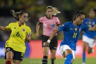 O duelo começou truncado. Aos 20 minutos do primeiro tempo, as colombianas levaram perigo em cobrança de falta de Catalina Usme, que Lorena defendeu com categoria. A Seleção Brasileira respondeu imediatamente, aos 22, em chute rasteiro de Antônia, que balançou as redes pelo lado de fora.