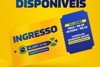 Os ingressos para o primeiro amistoso entre Brasil x Jamaica, marcado para o dia 1 de junho, na Arena Pernambuco, em São Lourenço da Mata (PE), já estão disponíveis e podem ser adquiridos pelo site selecao.eleventickets.com