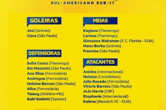 A Seleção Feminina Sub-17 está convocada para o Sul-Americano Sub-17. Nesta quinta-feira (7), a técnica Simone Jatobá anunciou a lista das 22 jogadoras que representarão a equipe brasileira na competição continental que começa no dia 13 de março, no Paraguai.
