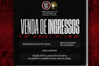 As vendas online são na plataforma OutGo (CLIQUE AQUI ). Na hora do jogo, é possível adquirir o ingresso na bilheteria do Barrettão.