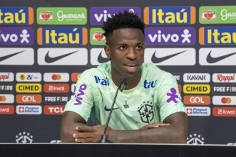 No pronunciamento na sala de imprensa do CT do Espanyol, após o treino, Vinícius agradeceu aos presidentes da CBF e da Fifa, Ednaldo Rodrigues e Gianni Infantino, pelas ações que estão sendo feitas para harmonizar o ambiente do futebol, afastando e punindo os que apregoam preconceitos.